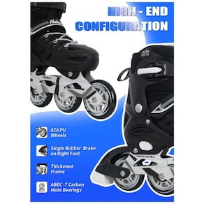 Ajuste ajustável: Esses patins vêm com um sistema de dimensionamento ajustável, permitindo que você encontre o ajuste perfeito para seus pés. O invólucro de plástico pode ser facilmente ajustado para acomodar diferentes tamanhos de pés, garantindo um ajuste confortável e . Esse recurso é particularmente útil para crianças em crescimento ou indivíduos com larguras variadas de pés.