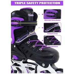 Ajuste ajustável: Esses patins vêm com um sistema de dimensionamento ajustável, permitindo que você encontre o ajuste perfeito para seus pés. O invólucro de plástico pode ser facilmente ajustado para acomodar diferentes tamanhos de pés, garantindo um ajuste confortável e . Esse recurso é particularmente útil para crianças em crescimento ou indivíduos com larguras variadas de pés.