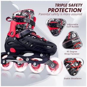 ALTO DESEMPENHO: A estrutura do skate inline é fabricada com liga de alumínio reforçada. As rodas de poliuretano 82A de alto rebote e os rolamentos ABEC 7 de alta velocidade oferecem um desempenho excepcional. O revestimento interno macio e respirável protege os tornozelos, enquanto as medidas de proteção tripla proporcionam uma sensação de conforto adicional ao patinar.
