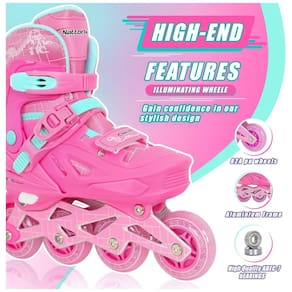 Patins Regulável para Crianças com Rodas Iluminadas para Iniciantes, Tam BR 35 a 39, Nattork, Rosa Escuro