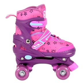 O Patins Roller Ajustável Cadarço tem freios frontais e tem 4 rodas paralelas que fornecem mais estabilidade e segurança ao andar. Vem com capacete, munhequeiras, joelheiras e cotoveleiras.