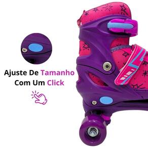 Patins roller ajustável com kit proteção completo 7 peças dmr6547 Cor: rosa Tamanho: 34/37 O patins roller infantil ajustável é perfeito para crianças que estão começando no mundo da patinação. Com design moderno e cores vibrantes, ele acompanha o crescimento do pé graças ao sistema de ajuste prático. Para garantir a segurança dos pequenos, o kit vem completo com 7 peças: capacete, joelheiras, cotoveleiras e protetores de punho. Ideal para lazer, desenvolvimento motor e muita aventura ao ar livre não perca mais tempo e garanta já Por que comprar com a imports - enviamos em até 24 horas; - produto de ótima qualidade; - produto testado e muito bem embalado para chegar em perfeito estado; - foco total no cliente. Informações importantes: - modelo: patins roller ajustável com kit de proteção - material: plástico pp, pe e pvc - peso: 0,025 - tamanho: 29x27 - material leve e resistente - estrutura reforçada - ajuste de tamanho com apenas um click - indicado para uso infantil, juvenil e adulto - tam p: 30-33 suporta até 50 kg - tam m: 34-37 suporta até 60 kg - tam g: 38-41 suporta até 80 kg Conferir o tamanho da bota e comparar com o da criança, antes de finalizar a compra/ P - 20 cm ajustável até 22cm M - 23cm ajustável até 25cm G - 26cm ajustável até 28cm Tabela de medidas: P - veste quem calça 31 - 30 - 29 - 28 M - veste quem calça 35 - 34 - 33 - 32 G - veste quem calça 39 - 38 - 37 - 36 Marca: Não Informado Ean: 7898063905058