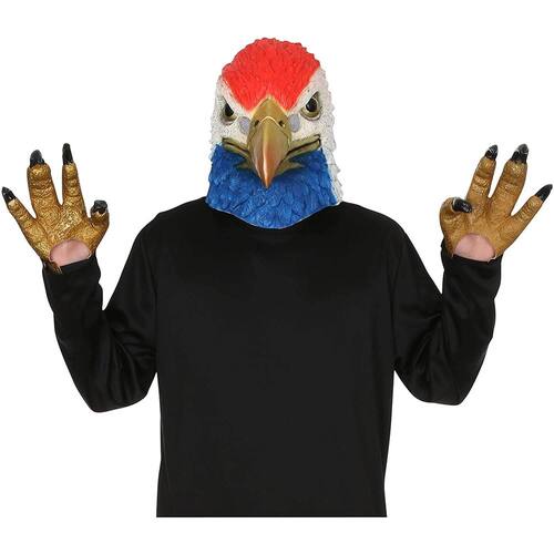 Esta máscara de águia vermelha, branca e azul com as mãos é o acessório de fantasia perfeito para mostrar o seu espírito americano. Ótimo para comícios políticos, tailgating, jogos de futebol, Halloween, desfiles e muito mais. Máscara e mãos são feitas de vinil.