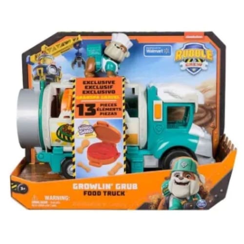 Além disso, o conjunto inclui 1 boneco do Vovô Gravel, vestido com seu uniforme oficial. Ajude vovô Gravel a fornecer os lanches saborosos de seu Food Truck à equipe de construção de Rubble e Sua Turma.