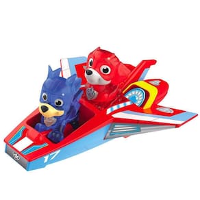 Voe em um mini jato com os filhotes de Patrulha Canina Crie muitas aventuras com Chase e Marshall os levando pelo céu a novos e incríveis territórios com o Mini Jet Está incluso: 1 mini veículo a jato e 2 bonecos Paw Patrol.