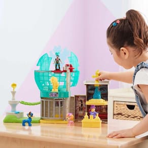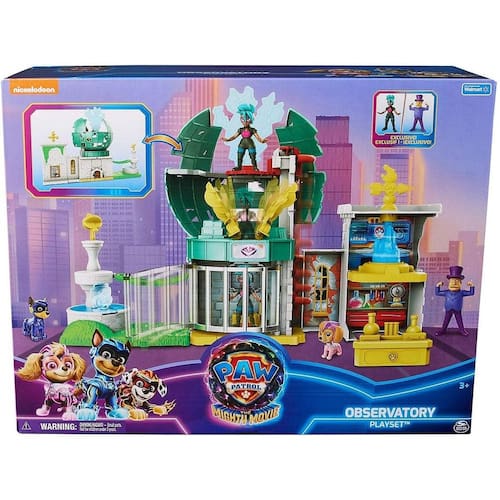 Reviva toda a emoção do Filme "Patrulha Canina: Um Filme Superpoderoso", com o Playset exclusivo do Observatório! Vee e o prefeito Humdinger estão tramando algo ruim e cabe aos filhotes, Chase e Skye, detê-los e salvar o dia!