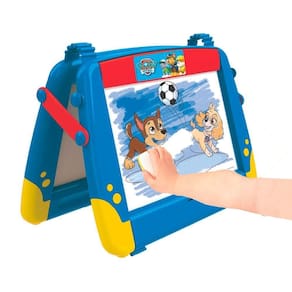 Patrulha Canina Quadro 5 em 1 - Fun Divirta-se Patrulha Canina Quadro 5 em 1. A turma canina mais amada pelas crianças chegou em um brinquedo para ajudar os pequenos nas tarefas escolares. Também promove elementos que podem ser vinculados ao cotidiano escolar de forma divertida e criativa. O brinquedo é composto por placa para apagar, placa magnética, prancheta de desenho, placa de esfregar para colorir, lousa clássica para giz. Selo Inmetro: 009904/2022