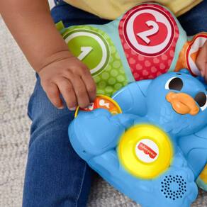 O brinquedo interativo Fisher-Price Linkimals Pavão Contagem & Cores da Mattel é um amigo plumado interativo que ensina números, contagem, cores, formas e gentileza ao seu bebê por meio de brincadeiras interativas. Os bebês podem apertar as 5 penas coloridas da cauda ou girar a roleta para ativar canções divertidas, sons, frases e luzes multicoloridas. Quando este orgulhoso pavão se junta aos outros brinquedos Linkimals, eles se iluminam, conversam, cantam e brincam juntos Este pavão interativo de brinquedo apresenta luzes multicoloridas e mais de 40 músicas educativas, frases e sons divertidos, você pode apertar os 5 botões das penas da cauda ou girar a roleta de cores inicia o aprendizado sobre números, contagem de 1 a 5, cores, formas e gentileza. Laços macios na cauda do pavão para mais diversão interativa. Ajuda a estimular a coordenação motora fina e habilidades sensoriais para bebês e crianças.
