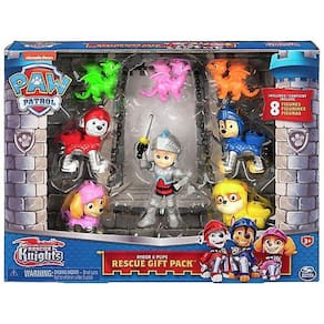 Prepare-se para missões medievais repletas de ação com o PAW Patrol Ryder e o Pups Rescue Gift Pack. Este incrível pacote de colecionadores de figuras PAW Patrol inclui uma figura de ação exclusiva de Ryder que você não encontrará em nenhum outro lugar, juntamente com Chase, Marshall, Rubble, Skye e três amigos coloridos de mini dragões. Vestidos com sua armadura de Cavaleiros de Resgate, Ryder e os filhotes estão prontos para entrar em ação e ajudá-lo a criar suas próprias missões emocionantes de resgate de dragões, assim como você viu no show.