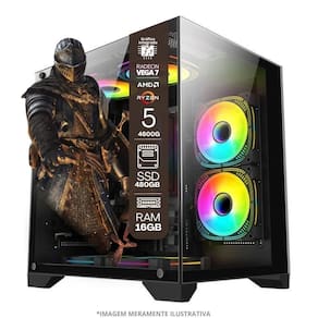 01 - PC Gamer AMD Ryzen 5 4600G, 16GB RAM, Placa de video Radeon Vega 7, SSD 480GB, Fonte 550W + Monitor 23” LED 75hz + Kit Gamer Completo