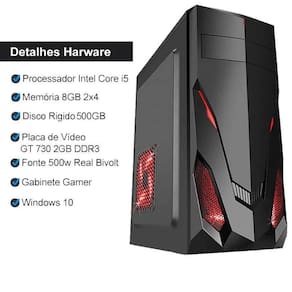 Especificações do computador : - processador intel i5 3470 - memória 8gb ddr3 (2x4) - disco rígido 500gb - placa de vídeo nvidia® geforce® gt 730 2gb ddr3 - windows 10 - fonte 500w real - gabinete gamer + led - conexão de rede cabo e wirelles