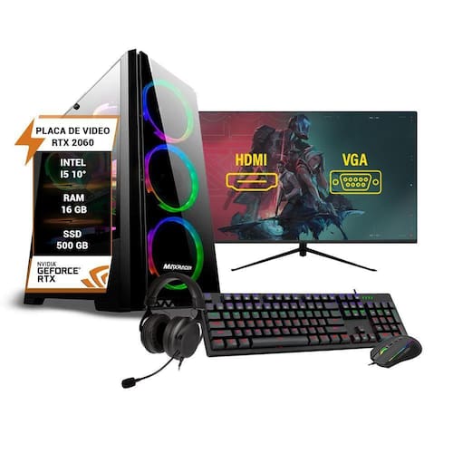 Pc gamer completo intel core i5 10 rtx 2060 16gb ssd 500gb Este pc gamer é a máquina definitiva para conquistar a gameplay perfeita em seus jogos Equipado com um processador potente i5 de 10 geração, placa de vídeo rtx 2060 8gb e 16gb de memória ram ddr4 para enfrentar desafios com precisão e velocidade inigualáveis, ssd 500gb para seus jogos e aplicativos carregarem rapidamente e garantir uma experiência fluida e sem interrupções. Domine seus oponentes e conquiste a glória com este arsenal gamer de alto nível gg Processador i5 10400f 10 geração 2.9ghz e 6 núcleosPlaca mãe h510, com lga 1200, suporta processadores intel core i7 / i5 / i3 de 10 e 11 geraçãoLan 10/100/1000 mbpsPlaca de vídeo rtx 2060 8gb 256bits16gb de memória ram ddr4Ssd 500gbFonte 600w bivoltSistema operacional windows 11 Está incluso neste anúncio os seguintes itens:1 cpu com os componentes descritos acima1 monitor de 24 polegadas1 mousepad1 webcam1 teclado e mouse gamer com fio1 headset gamer com fio1 adaptador wifi usb1 bluetooth usbCabos de alimentação Homologação Anatel: 025931304858 Marca: Wj Info