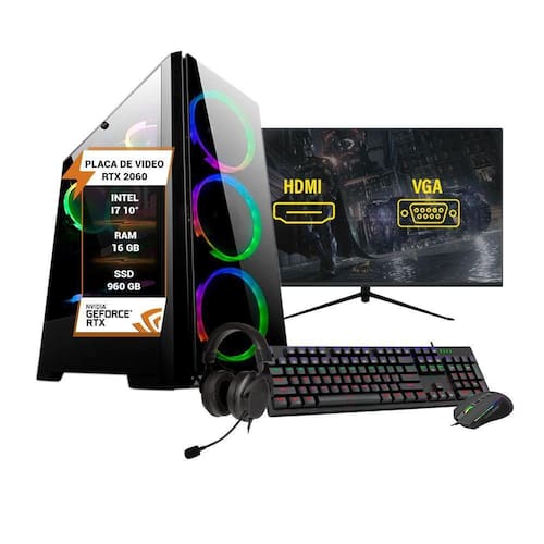 Pc gamer completo intel i7 10 rtx2060 16gb ssd 960gb 27 Este pc gamer é a máquina definitiva para conquistar a gameplay perfeita em seus jogos