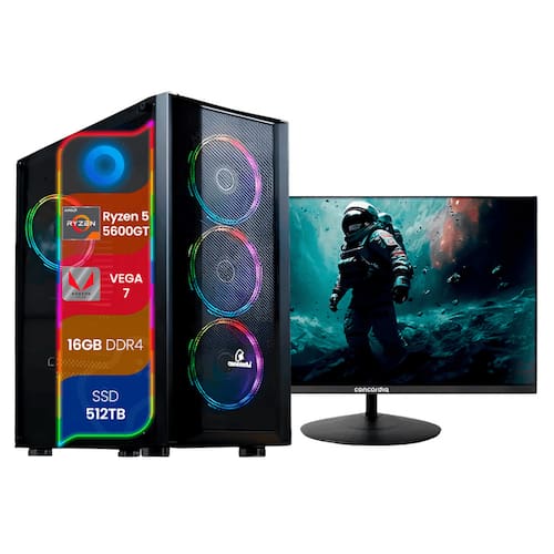 PC Gamer Concórdia Ryzen 5 5600GT Memória 16GB SSD 512gb Fonte 600w Windows 11 Pro Monitor Gamer 23,8"