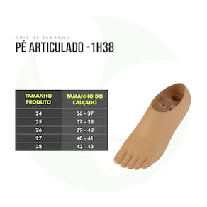 Descrição Comercial: O Pé Articulado 1H38 possuí formato natural, superfície lisa e dedos modelados. Este pé de eixo único permite ao usuário obter uma postura segura rapidamente. Eles são especialmente adequados para acessórios transfemorais. A articulação é vendida separadamente do pé.