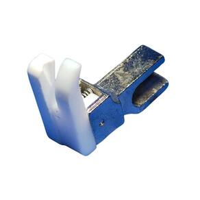 Material de Teflon resistente. Guia articulada no lado esquerdo. Indicado para pesponto e barras. Medida da guia de 2mm. Compatível com máquinas de costura retas industriais.