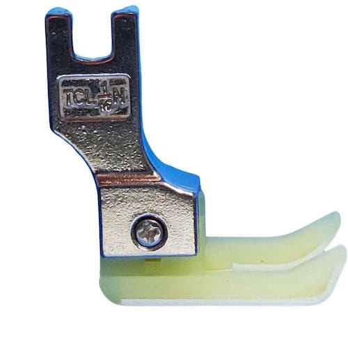 Material: Teflon de alta resistência. Tipo de calcador: Pesponto compensado. Lado da guia: Esquerdo. Medida da guia: 2mm. Aplicação: Pespontos e acabamento de barras. Compatibilidade: Máquinas de costura retas industriais. Referência: TCL-1/16N.