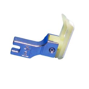 Material de Teflon resistente. Guia articulada no lado esquerdo. Indicado para pesponto e barras. Medida da guia de 2mm. Compatível com máquinas de costura retas industriais.