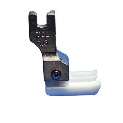 O Pé Calcador de Teflon Pesponto TCL-1/8E foi desenvolvido para facilitar a execução de pespontos e barras em máquinas de costura retas industriais. Feito de Teflon com alta durabilidade, ele possui uma guia articulada do lado esquerdo, ideal para costuras precisas com 3mm de distância.