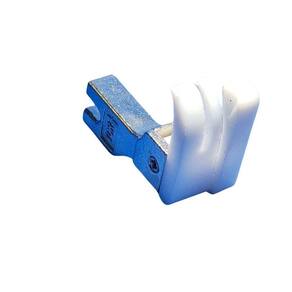 Material de Teflon resistente. Guia articulada no lado esquerdo. Indicado para pesponto e barras. Medida da guia de 3mm. Compatível com máquinas de costura retas industriais.