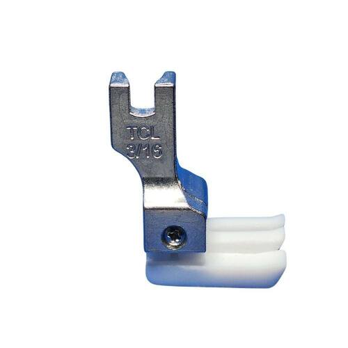 O Pé Calcador de Teflon Pesponto TCL-3/16E foi desenvolvido para facilitar a execução de pespontos e barras em máquinas de costura retas industriais. Feito de Teflon com alta durabilidade, ele possui uma guia articulada do lado esquerdo, ideal para costuras precisas com 5mm de distância.