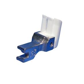 Material de Teflon resistente. Guia articulada no lado esquerdo. Indicado para pesponto e barras. Medida da guia de 5mm. Compatível com máquinas de costura retas industriais.