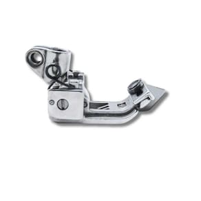 Guia móvel ajustável para definir a distância entre a agulha e a borda do tecido. Largura de 5.6mm, ideal para costurar galões e fitas de diversos tamanhos. Compatível com máquinas galoneiras Yamato VC2700 e similares. Permite costuras em linhas retas e curvas complexas. Ideal para criar acabamentos profissionais em diversos tipos de tecidos.