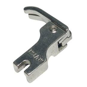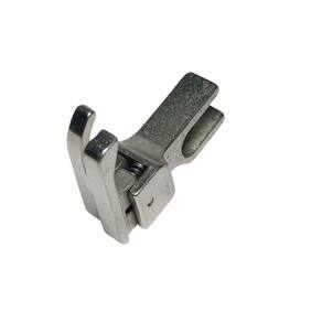 Fabricado em aço resistente de alta durabilidade. Guia articulada de 2mm no lado direito. Ideal para pespontos e acabamento de barras. Compatível com máquinas de costura retas industriais. Acabamento robusto para uso intensivo.