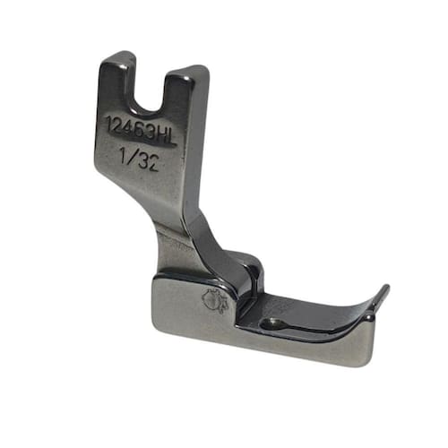 O Calcador Guia Fixo Reta Industrial 12463 - L 1/32 é projetado para fornecer controle preciso da borda a ser costurada, localizado no lado direito. Ideal para uso em costura industrial, ele garante um alinhamento uniforme e acabamento de alta qualidade em suas peças.