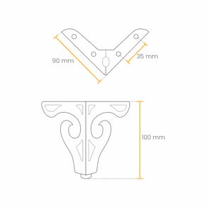 Altura: 100 mm Largura total: 90 mm Profundidade: 35 mm