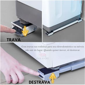 Pé de geladeira pe fogão suporte com rodinha base ajustável Chega de arrastar geladeira, fogão, máquina de lavar, lava louças, entre outros móveis. Agora você terá mais facilidade no seu dia a dia com esta maravilhosa base com rodinhas e melhor, ela é ajustável de acordo com a largura do seu eletrodomestico / moveis. Enviamos em até 24 horas úteis Produto lacrado com garatia e Especificações: Cor do produto: branco Carga máxima: 200kg; Dimensões do produto. a x l 3,5 cm x 4,5cm Peso da embalagem: 1,50kg; Peso do produto: 1,40kg; Itens por caixa: 01 par; Prazo de validade: indeterminado; Composição: aço carbono, plástico; Dimensões do produto mínima 40cm Dimensões do produto máxima 69cm - produto com excelente qualidade; - fácil instalação; - ajuste de profundidade; - ajuste de largura independente conforme necessidade; - sistema de freio; - base antiderrapante; - facilita limpeza, movimentação e protege contra ferrugem. Marca: Não Informado