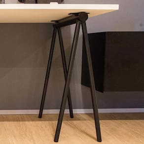 O cavalete para mesa é uma peça curinga que nunca sai de moda nas decorações, assim como o aço. Combinando praticidade e versatilidade, eles trazem uma atmosfera descontraída para qualquer ambiente. O cavalete de ferro preto é uma fusão de referências retrô e contemporâneas, perfeitos para aqueles que desejam criar um espaço com muita personalidade e criatividade. Este cavalete para mesa de jantar foi projetado para se adaptar a diferentes propósitos e estilos de decoração. Eles são ideais para serem s como suportes de mesas, bancadas ou até mesmo como suporte para prateleiras. Sua estrutura em aço confere durabilidade e estabilidade, garantindo que suas criações sejam apoiadas com segurança.