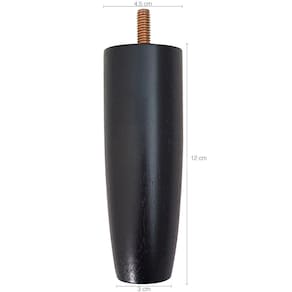 Qualidade, praticidade e resistência. #Ideal para Peça de Reposição #Pé Para Cama Box #Altura de 12cm Garantia: 90 Dias / Peso: 100g / Cor: Preto / Ref: 79DM09PT12CM Dimensões: 3cm (C) x 4,5cm (L) x 12cm (A) Cuidados: Não lavar com materiais abrasivos. Material: - Eucalipto: umidade de 15%, madeira 100% reflorestada. - Prisioneiro de aço zincado em amarelo trifásico; - Tinta PU a Base de Solventes. - Feltro Emborrachado. O pé para cama de 12cm é ideal para camas de casal e solteiro, possui rosca padrão, que se adapta a qualquer tipo de cama box ou baú. O pé possui feltro para ser fixado na base, protegendo e evitando arranhar e riscar seu piso ou laminado.