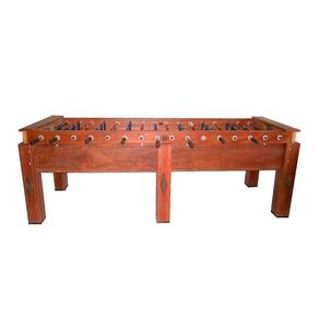 Mesa de pebolim com estrutura confeccionada em madeira maciça cedrinho em tom de mogno e com 06 pés, campo de jogo em 5mm de espessura na cor verde, bonecos em alumínio e ferros embutidos dos bonecos pintados em Epoxi.