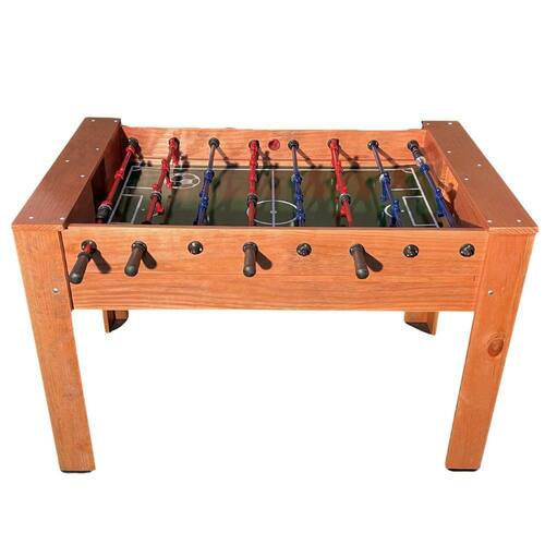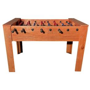 Mesa de pebolim nas medidas oficiais com estrutura confeccionada em madeira maciça pinus e com 04 pés em "L", campo de jogo em 5mm de espessura na cor verde, giro do goleiro em 360º, bonecos em alumínio e ferros dos bonecos pintados em Epoxi.