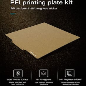 Placa de impressão Ender-5 Plus PEI 377 x 370 x 2 mm Superfície fosca Características: PEI dourado com superfície fosca: retardante de chama e resistente ao calor Placa de mola PEI: alta resistência e resistência ao desgaste Adesivo magnético macio: força magnética forte e remoção simples Pacote: 1 placa de mola de impressão PEI Ender 5 Plus com superfície fosca; 1x adesivo magnético macio - PEI dourado com superfície fosca: o material PEI tem excelente estabilidade a altas temperaturas, retradante de chama, resistência ao calor, alta resistência, resistência à abrasão e estabilidade de impressão. - Kit dois em um: a placa de impressão PEI consiste em duas partes, placa adesiva magnética macia e placa de aço com mola PEI fosca dourada. A placa magnética macia tem uma forte força magnética para garantir que a placa de aço da mola PEI não se mova durante o processo de impressão. Ao mesmo tempo, a placa de aço com mola PEI tem excelente resistência à flexão, e o modelo pode ser removido dobrando após a conclusão da impressão. - Resistente ao calor e sem desmagnetização: o PC pertence ao ímã macio, com retardador de chama, resistência ao desgaste, resistência à oxidação, baixo encolhimento de formação e resistente ao calor sem desmagnetização. - Revestimento PEI fosco: o revestimento PEI fosco pode proporcionar boa adesão durante a impressão e evitar deformação da primeira camada. Quando a temperatura cai após a impressão, o modelo pode ser bem separado do revestimento PEI, basta dobrar para removê-lo, e você pode dizer adeus ao processo complicado de pegar o modelo. - Modelo compatível: esta placa de impressão PEI é compatível com Ender 5 Plus, o tamanho do produto é 377 x 370 x 2 mm, a superfície tem revestimento PEI, não arranhe a superfície com objetos pontiagudos para evitar danificar o revestimento PEI fosco.