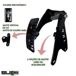 pedal produzido com corte cnc aço liga sae-1020 dobra computadorizada pintura epóxi mola galvanizada e parafusos em inox pedaleira com parafuso cônico para maior conforto 5 opções de regulagem para cabo do acelerador fácil aplicação Marca: Bugtech
