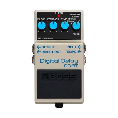 Pedal Boss Dd-3t Para Guitarra O icônico Digital Delay DD-3 da BOSS tem sido presença garantida nos pedalboards desde 1986, amado em todo lugar pela sua incrível sonoridade e operação simples e intuitiva. Agora é possível ajustar o tempo dos delays via tap tempo usando o próprio switch do pedal ou um pedal externo, com a opção de três subdivisões de tempo. E o jack direct output foi movido próximo ao main output, fornecendo uma conectividade ainda mais fácil pra configurações Wet/Dry. ESPECIFICAÇÕES: Modelo: DD-3T Digital Delay Nível de entrada nominal: 20 dBu Impedância de entrada: 1 M ohm Nível de saída nominal: -20 dBu Impedância de Saída: 1 k oh8 Impedância de carga recomendada: 10 k ohms ou superior Bypass: Buffered bypass Controles: MODE knob, TIME knob, FEEDBACK knob, E.Level effect Level knob, Pedal switch Fonte de energia: Fonte 9V ou Pilhas Alcalinas Não inclusa Corrente: 45mA Vida útil esperada da bateria em uso contínuo: Alcalina: Aprox. 11.5 horas, Carbon: Aprox. 3 horas.