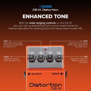 BOSS Distorção DS-1X | Pedal de efeito de guitarra avançado alimentado pela tecnologia MDP | Distorção de alta definição para músicos modernos de Crunch a Mega-Gain | Processamento potente em tempo