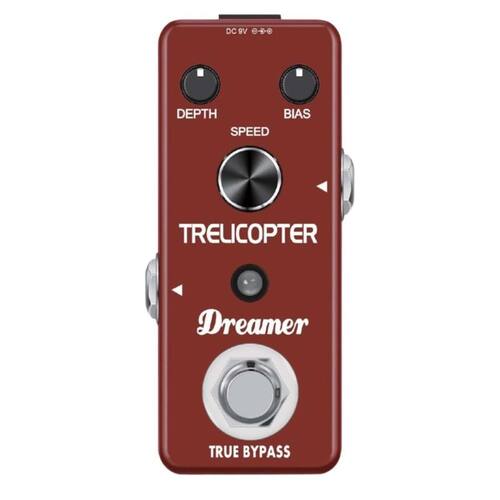 Optical Tremolo clássico com amplo alcance de velocidade e profundidade Botão BIAS adiciona várias tonalidades ao som de tremolo True Bypass Fonte de alimentação DC 9V Entrada: Jack mono de impedância: 1M Ohms Saída: Jack mono de impedância: 1k Ohms Requisitos de energia: Fonte AC 9V DC Corrente de Consumo: 5 mA