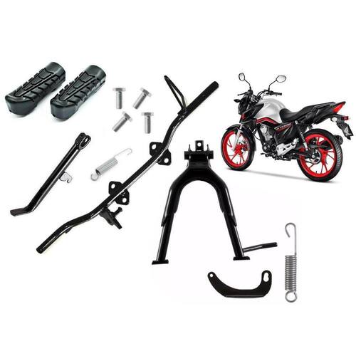 Itens inclusos: 02 Borrachas Estribo - 01 Cavalete Central - 01 Cavalete Lateral - 01 Estribo - 01 Mola Cavalete Lateral - 04 Parafusos Fixar Estribo