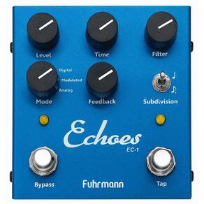 O Echoes EC-1 da Fuhrmann é um pedal de TAP DELAY com três modalidades distintas para atender o mais exigente dos músicos. O tempo das repetições pode tanto ser ajustado pelo knob Time, quanto pelo Tap, que através de seu led, monitora as repetições.