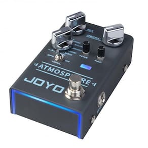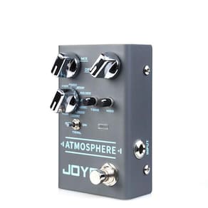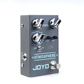 Pedal guitarra joyo reverb shimmer 9 modos - atmosphere O pedal joyo atmosphere é um reverb digital que possui 9 tipos de reverb:Spring: clássico reverb de molas, provavelmente teve seu primeiro uso nos amps fender vibroverb em 1963. Se procura uma sonoridade vintage clássica de reverb, essa é a opção para você.Church: reverb que simula a acústica de uma sala muito ampla, como uma igreja.Plate: o reverb plate foi um dos primeiros tipos de reverb artificiais utilizados em gravação profissional. Eram utilizadas placas de metal tensionadas por molas presas em uma armação externa. Funciona muito bem para vocais, sendo um reverb brilhante e cristalino.Eko-verb: uma bela combinação de delay e reverb. Ambos os efeitos são diferentes, porém similares em sua natureza de reproduzirem a reflexão das ondas sonoras em um ambiente. Experimente o eko-verb para ter a sensação realista dos dois efeitos combinados.Shimmer: a sensação de mergulhar em uma névoa cintilante de um sonho. Um efeito que produz uma camada adicional à cauda do reverb com uma oitava aumentada e enviada mixada sobre o sinal do instrumento. Um efeito essencial para estilos como soft rock, bastante explorado por artistas como hillsong, mateus asato, the edge, entre outros.Comet: este adiciona um pouco de phaser/flanger à reverberação, trazendo a sensação de um cometa em órbita entre você e seu amplificador de guitarra.Rewind: um efeito que te dá a sensação do reverb de trás para frente, como se estivesse rebobinando uma fita.Forest: uma reverberação com um pouco de chorus, te dando a sensação de um banho de sol na floresta, enquanto escuta os pássaros cantarem.Pulse: a sonoridade de uma reverberação pulsante, resultado da reflexão das ondas sonoras entre paredes paralelas. O joyo atmosphere possui os controles padrão mix, decay e tone. Adicionamos neste pedal também o knob de controle mod, para o controle mais preciso de profundidade e tempo nos efeitos de reverberação que possuem modulação.Uma característica única no joyo atmosphere é a função trail. Esta permite que o efeito continue soando até desaparecer quando o pedal é desligado. Isto te dá a opção de uma interrupção abrupta, ou um fade out mais sutil e natural quando desativar o pedal. O joyo atmosphere pode ser utilizado com guitarras, violões, contrabaixo, vocais, baterias, teclados e sintetizadores. Descrição técnicaControles: mix, decay, tone, mod, trailImpedância de entrada: 2,2 mohmImpedância de saída: 100 ohmConsumo de corrente: 140 maAlimentação: 9v dc centro-negativo Dimensões: 10,9 x 6,7 x 4,8 cmPeso: 248 g