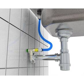 Acionador mecânico para torneiras com pedal em inox (piso).DescriçãoO pedal mecânico em inox foi desenvolvido para ser utilizado em ambientes exigentes como áreas de produção industrial, como agroindústria e alimentícia, como na panificação, cozinhas industriais e de restaurantes. Reunindo praticidade e conforto para a higienização das mãos, evita a contaminação cruzada para os profissionais que a utilizam. O acionamento é feito pressionando o pedal com o pé, dispensando o contato manual para abrir a torneira, gerando grande economia na sua utilização e atendendo as exigências da vigilância sanitária (NBR 9050).Vantagens:Praticidade: Você terá água em abundância, na medida certa, mesmo com as mãos ocupadas, somente quando necessário;Higiene: Você não tocará na torneira e evitará a contaminação cruzada;Economia: Você utilizará somente a água que necessita, eliminando o desperdício e reduzindo o consumo de forma significativa (pode superar os 70%);Simples instalação: Basta fazer dois furos no piso para fixar o pedal. Não há necessidade de trocar a torneira já instalada no local.Instalação: Fechar o registro de entrada da água, desconectar a mangueira flexível da parede. Rosquear a válvula (rosca macho ½") no ponto de água da parede. Conectar a mangueira flexível (rosca macho ½") na saída da válvula (caso seu flexível seja fêmea-fêmea, utilize um niple de ½"). O flexível não faz parte do kit fornecido - pode ser utilizado o mesmo item já existente na sua instalação. Posicionar o pedal numa posição confortável para o usuário, assegurando que o cabo não fique dobrado, mantendo uma curvatura natural. Marcar posição do pedal, fazer os 2 furos no piso utilizando uma broca de 8mm e colocar as buchas. Fixar o pedal no chão com os parafusos de inox fornecidos. Abrir o registro de entrada da água. Se necessário, regular a tensão do cabo utilizando o regulador no topo da válvula (regulagem similar ao de freio de bicicleta)Informações técnicas: Pedal acionador muito confortável para pisar. Cabo de 1,0 m para instalação padrão sob a pia (consulte para comprimentos maiores em instalações especiais e quando a torneira sai da parede). Conexão padrão hidráulica de ½" Pressão de operação: mínima 2m.C.A (0,2kgf/cm2) , máxima 80m.C.A. (8,0kgf/cm2).