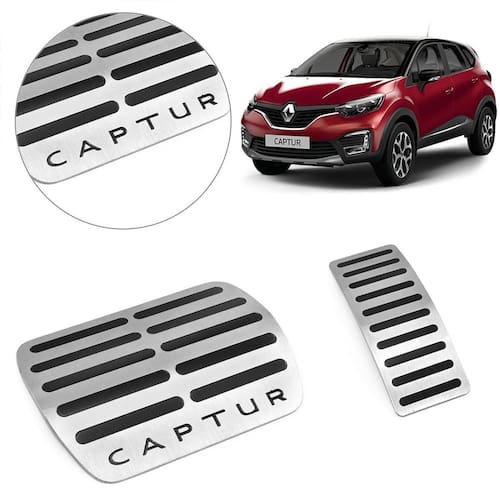 A embalagem contém 01 pedaleira do freio e 01 pedaleira do acelerador. Essa pedaleira é compatível com o modelo Captur fabricado entre 2017 e 2022, em todas as versões com câmbio automático.