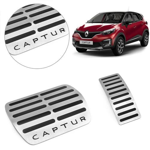 A embalagem contém 01 pedaleira do freio e 01 pedaleira do acelerador. Essa pedaleira é compatível com o modelo Captur fabricado entre 2017 e 2022, em todas as versões com câmbio automático.
