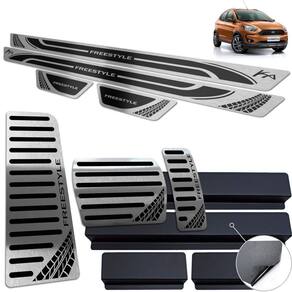 Fabricado em aço inox 304 o kit soleiras, vinil, pedaleiras e descanso de pé além de ajudar a proteger o local onde há o desgaste devido o calçado ficar o tempo todo esfregando, deixará o interior do veículo personalizado e com muito mais estilo.