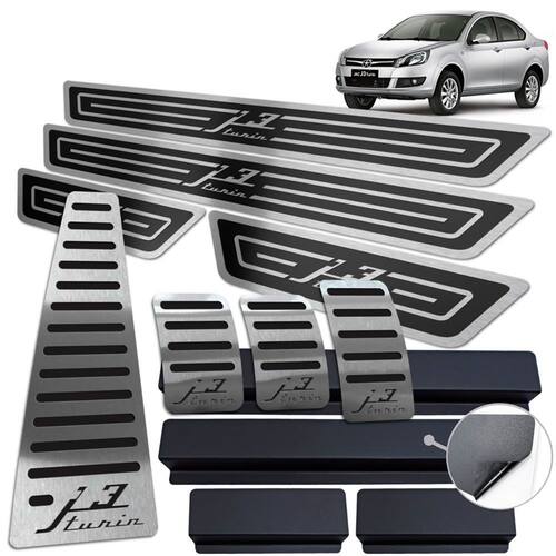 Fabricado em aço inox 304 o kit soleiras, vinil, pedaleiras e descanso de pé além de ajudar a proteger o local onde há o desgaste devido o calçado ficar o tempo todo esfregando, deixará o interior do veículo personalizado e com muito mais estilo.
