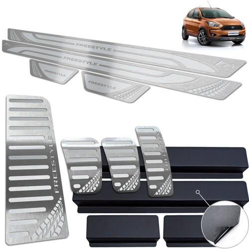 Fabricado em aço inox 304 o kit soleiras, vinil, pedaleiras e descanso de pé além de ajudar a proteger o local onde há o desgaste devido o calçado ficar o tempo todo esfregando, deixará o interior do veículo personalizado e com muito mais estilo.