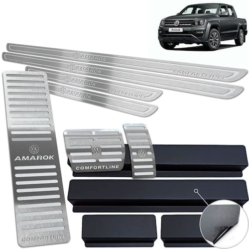 Fabricado em aço inox 304 o kit soleiras, vinil, pedaleiras e descanso de pé além de ajudar a proteger o local onde há o desgaste devido o calçado ficar o tempo todo esfregando, deixará o interior do veículo personalizado e com muito mais estilo.